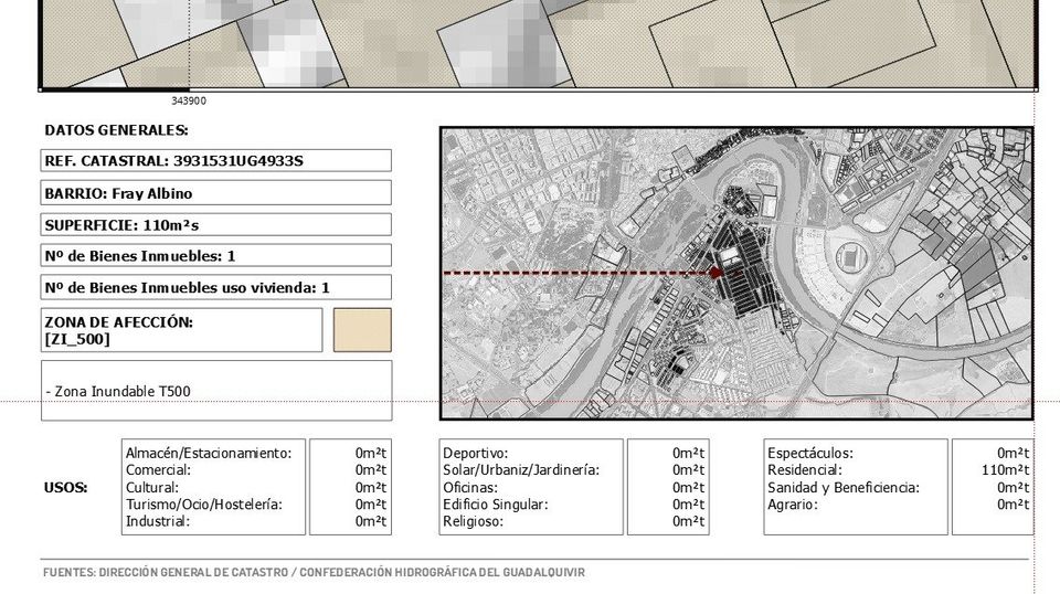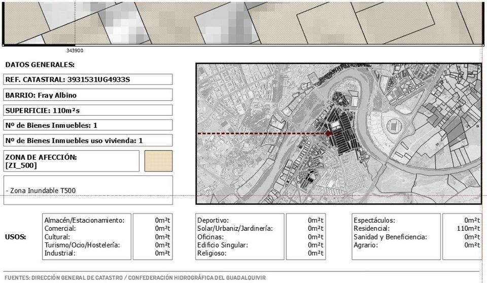 Se han extraído de los ráster de la Confederación Hidrográfica del Guadalquivir el dato de la altura que alcanzaría el agua en caso de una avenida T500, un dato fundamental para la tramitación de licencias en Zonas Inundables.