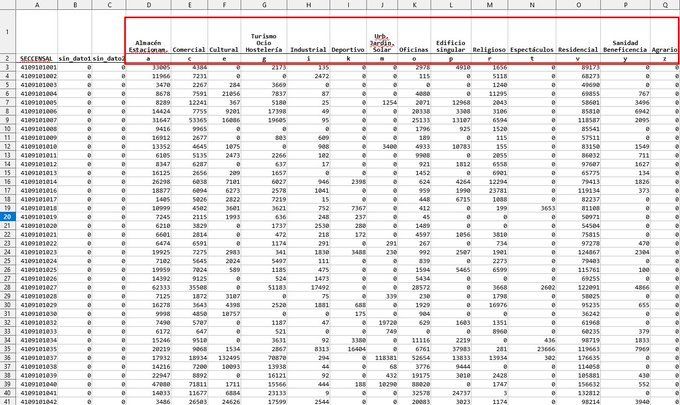 En este caso usamos las bases de datos para la extracción de los m2t de bienes inmuebles de una ciudad, desglosados por usos y por sección censal.