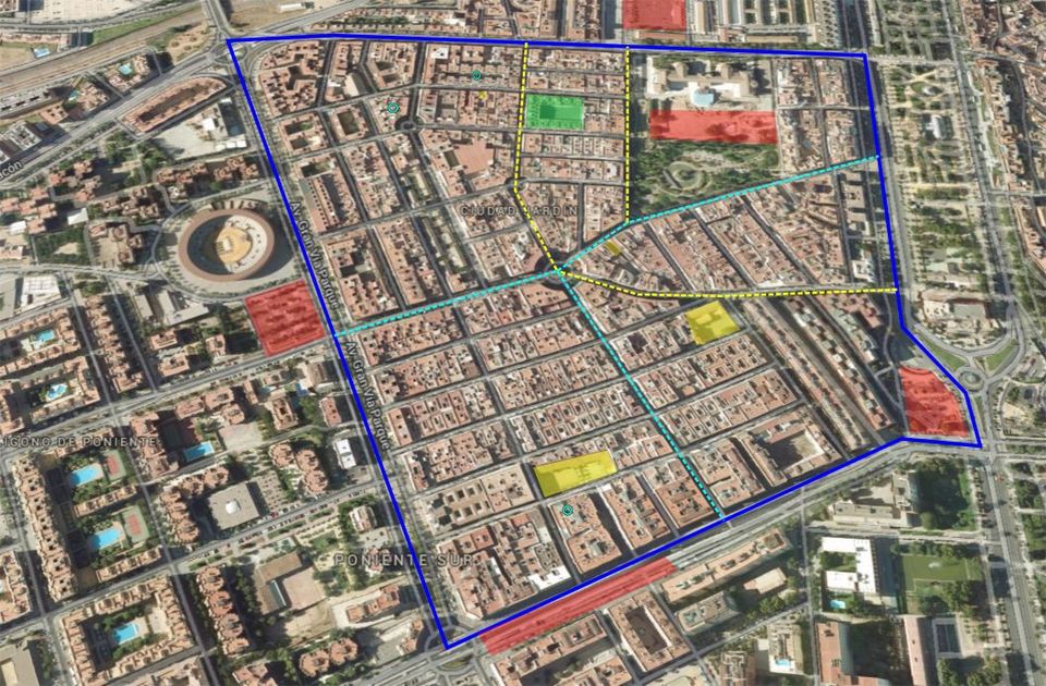 Las razones por la que creemos que este sistema es aplicable a Ciudad Jardin es por un lado la densidad de viviendas existente y por otro lado la trama de espacios comerciales de intercambio que en otras fechas existieron y que hoy se encuentran en desuso. Pensamos que con una intervención urbanística blanda y sostenida en el tiempo se puede generar ese empuje.