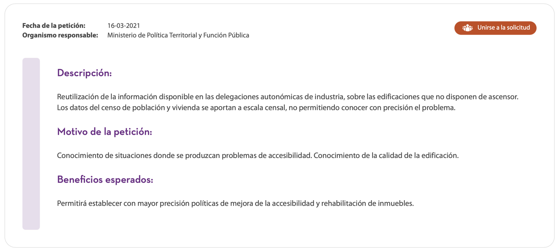 Reutilización de la información disponible en las delegaciones autonómicas de industria, sobre las edificaciones que no disponen de ascensor.